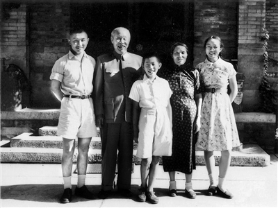 (董必武夫妇与三个子女在小石桥胡同留影)