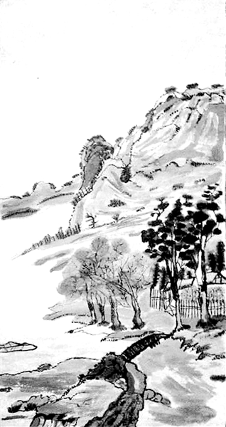 山水人家(国画) 张思思 作